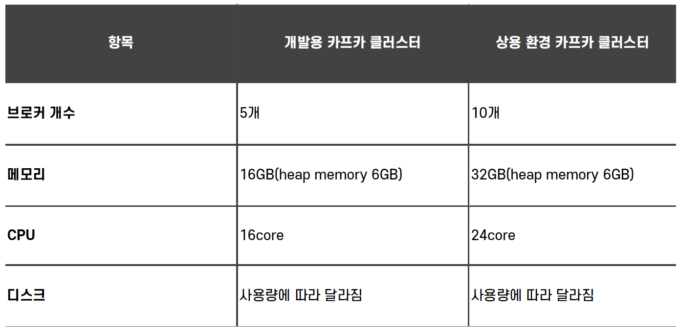 - 카프카는 전송된 데이터를 모두 파일 시스템에 저장하고, 대규모 데이터 통신이 일어나기 때문에 고성능의 하드웨어를 사용해야함.