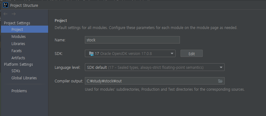 → 사실 17이 안 뜨길래, 그냥 Project default로 해줬음.